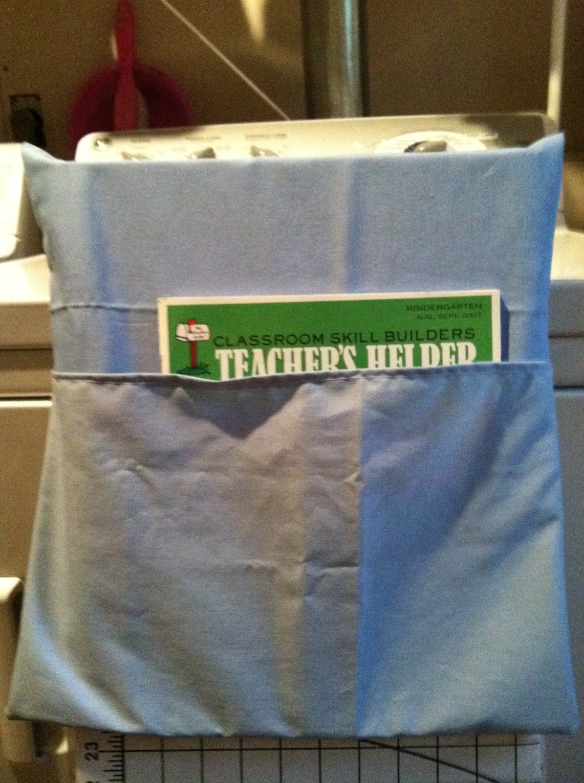 I did not want them to have bins that I needed to store some place in my room. Space is at a premium in classrooms. I decided to make some book bags that will hang on the back of their chairs. This way their books are close at hand, won't get lost in the desk, no bulky bin and they can still easily take them anywhere in the classroom/school.
